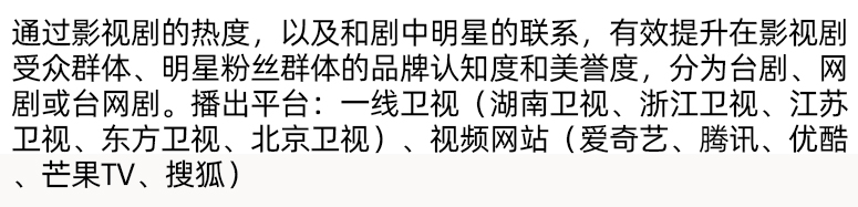 影視劇植入:國內部分影視劇的前期拍攝植入商務合作。