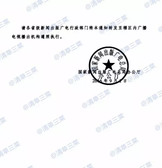 請各省級新聞出版廣電行政部門將本通知轉發至轄區內廣播電視播出機構遵照執行。