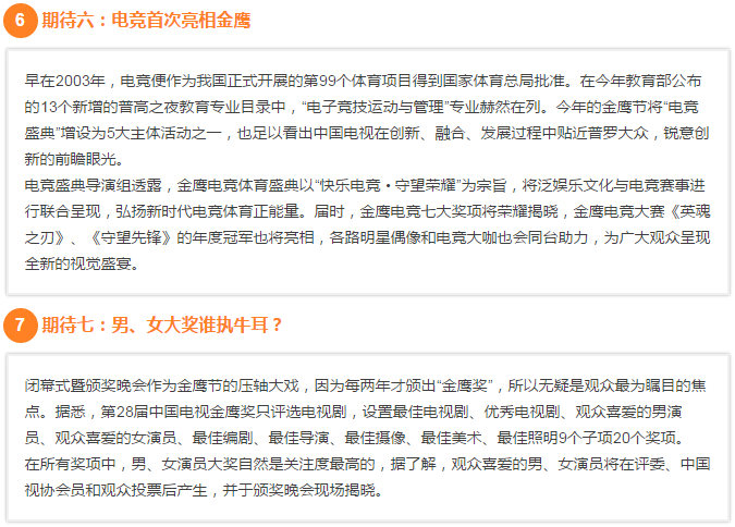 中國電視自1958年誕生至今,已走過了近一個甲子。作為中國最具權威和影響力的電視獎項,倍受億萬觀眾關注和期待的第28屆中國電視金鷹獎暨第11屆金鷹電視藝術節,即將于10月14日至16日期間在湖南長沙隆重舉辦。據悉,今年的“金鷹節”在“開幕式暨文藝晚會”、“互聯盛典”、“閉幕式暨頒獎晚會”三大主體晚會之外,特別增設“金鷹論壇”和“GEC金鷹電競體育盛典”兩大主體活動,電視、互聯網、游戲“三界”精英集結,融合創新,為本屆金鷹節增添更多精彩亮點。