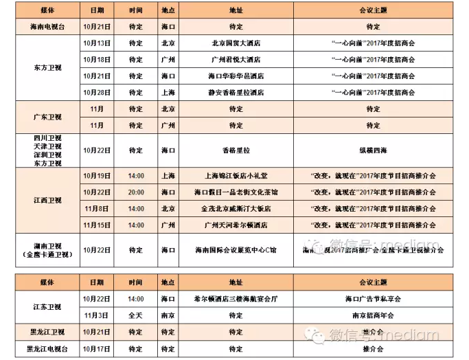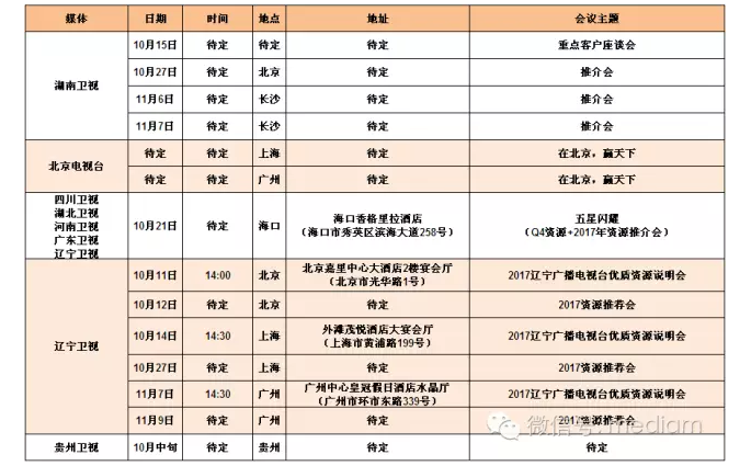 2017年媒體推介招標(biāo)會(huì)議時(shí)間表