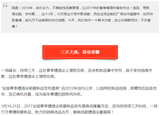 同一地點,引爆春糖!2017成都春季糖酒會