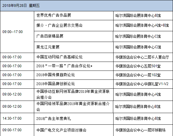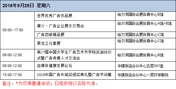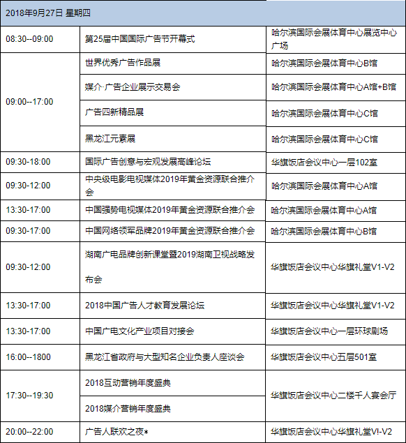 以“龍騰新時代,智匯靚冰城” 為主題的第25屆中國國際廣告節,將于9月27日至29日在哈爾濱國際會展體育中心舉辦。本屆中國國際廣告節的主辦單位為中國廣告協會和哈爾濱市人民政府。
